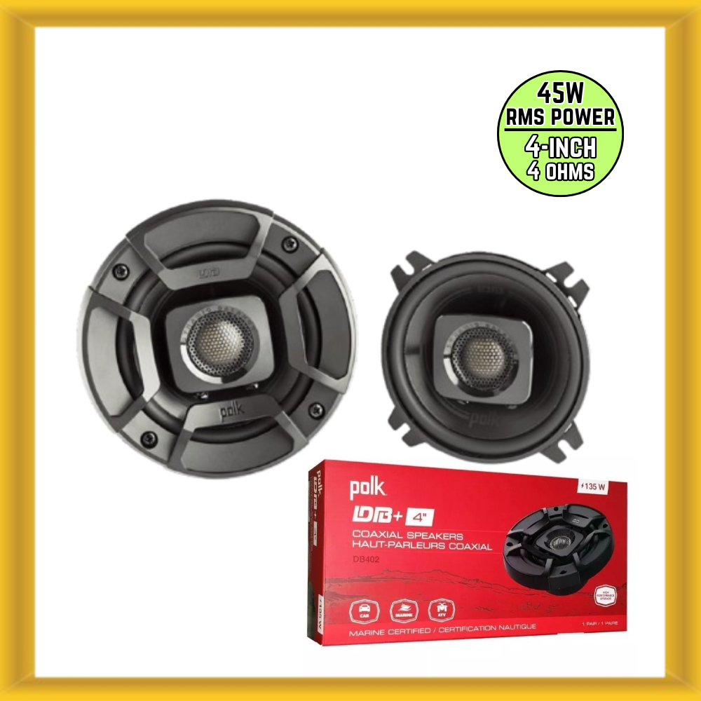 Polk Audio DB402 4" 45W RMS Power 4 Ohms Coaxial Car Speakers (PAIR) NEW